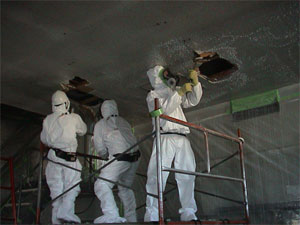 での石綿含有建材(岩綿吸音板)の破砕作業」