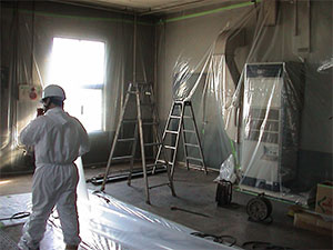 十分な対策(二重養生・クリーンルーム設置・負圧排気)