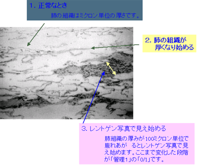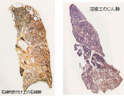 これは、正常なときと比べた石綿肺の方の顕微鏡の像です(写真10)。