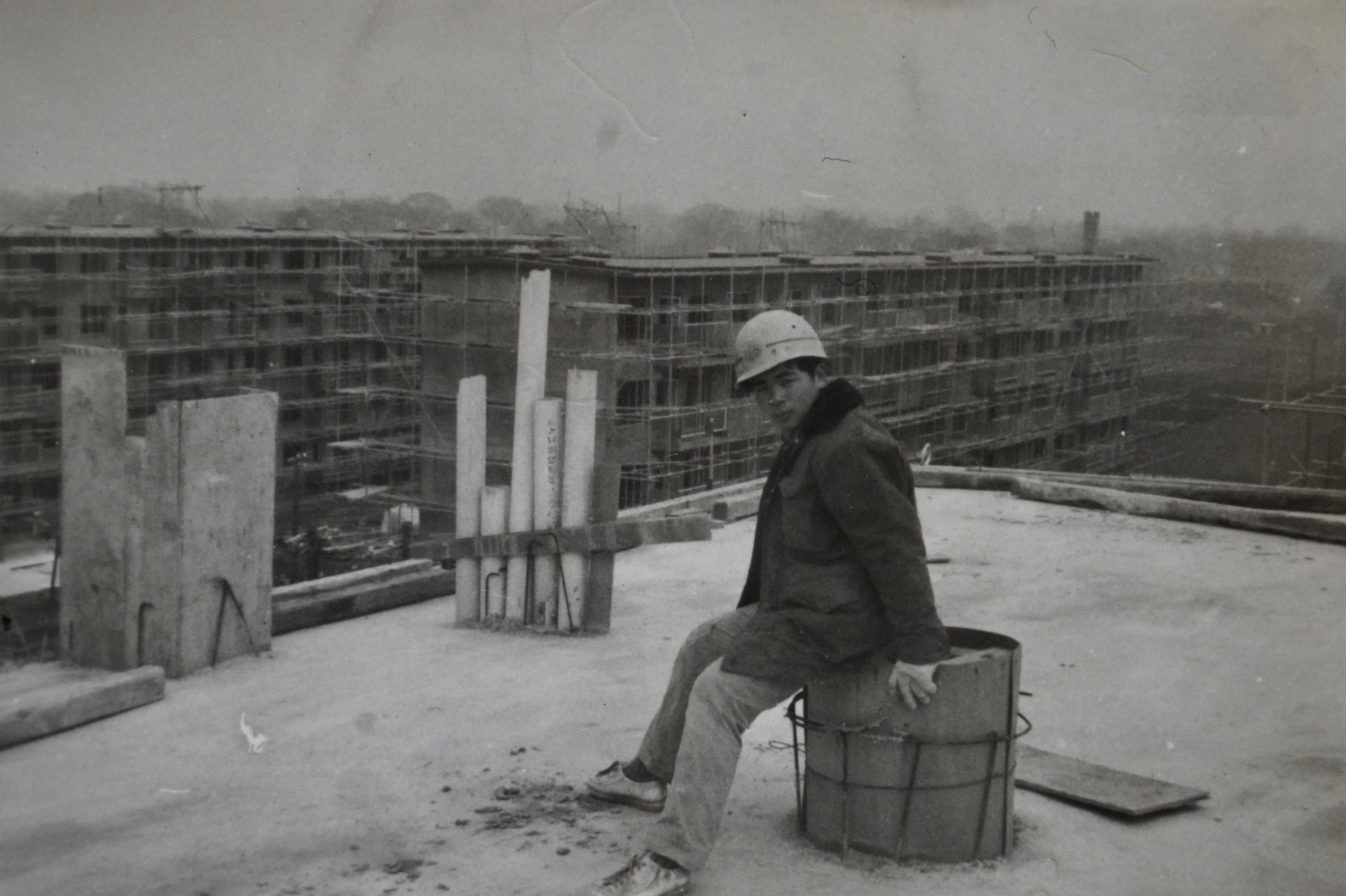 夫は鹿児島県で生まれて集団就職で上京し、1967年頃に東京都府中市の日興団地の建設現場で型枠大工として働いていました。その当時写したスナップ写真です。中皮腫を発症して労災申請しましたが会社は廃業しており、元同僚もいなくて困っていたとき、この写真の背後に写っていた「石綿パイプ」という文字が重要な証拠になりました。