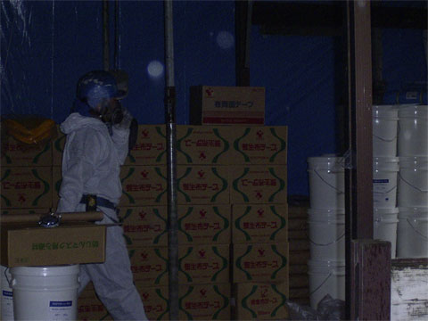 続いて川口町を初めて訪問しました。地震の被害が激しく、民家の倒壊が目立ちました。ビルが少ないため、吹きつけ石綿のある建物は多くはないようでした。町では主に民家の解体が進行中でした。
