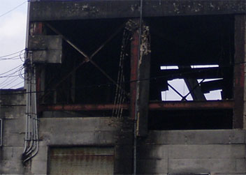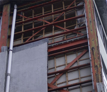 小千谷市街地には、岩綿吹きつけと思われる鉄骨の建築物が複数ありましたが、11月3日と変わらず今後の解体時が懸念されました。今回は新たに3つのビルを路上から視察しました。一つのビルは鉄筋のみのビルの解体でした。