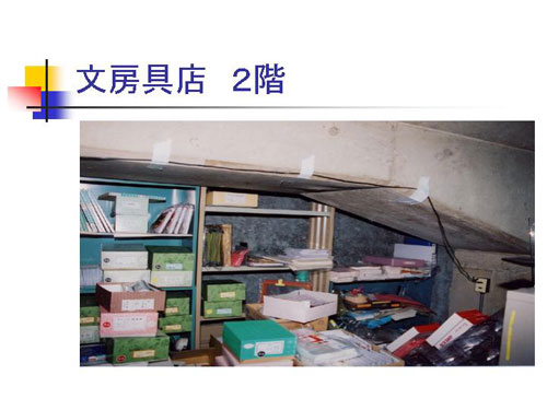 上に張り出しているのが鉄道の高架部分であります。その下のところ、文房具店のいろいろなものを置いている後ろの壁が、青石綿、クロシドライトであったわけです。